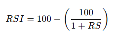 여기서 RS (Relative Strength)는 다음과 같이 계산됩니다.